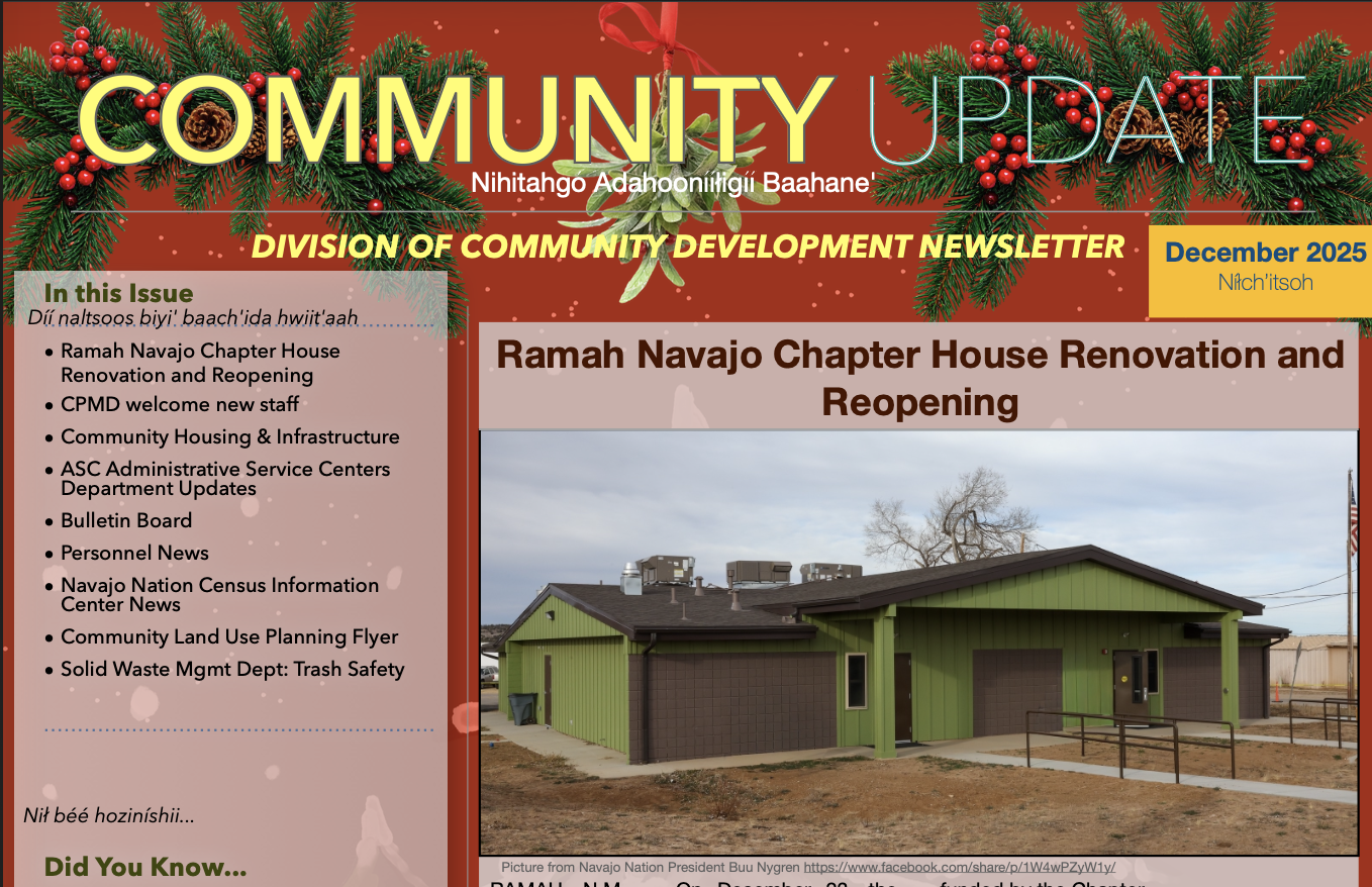 Stay informed and connected with the latest updates from the Division of Community Development. This monthly publication highlights news, resources, and activities relevant to DCD, chapters, and Navajo Nation employees.
