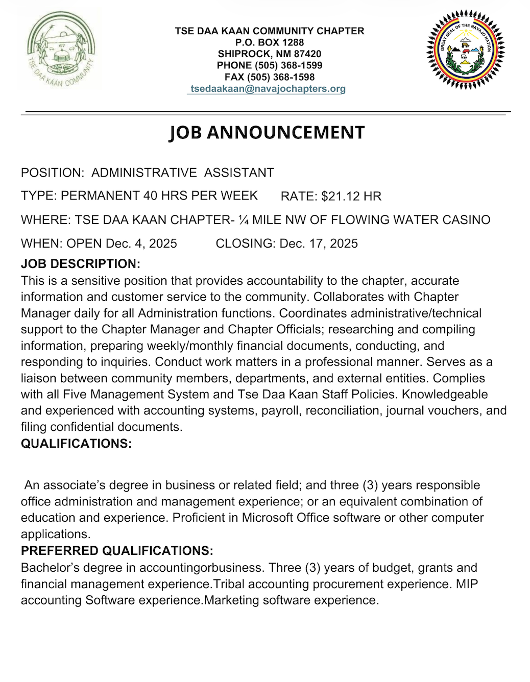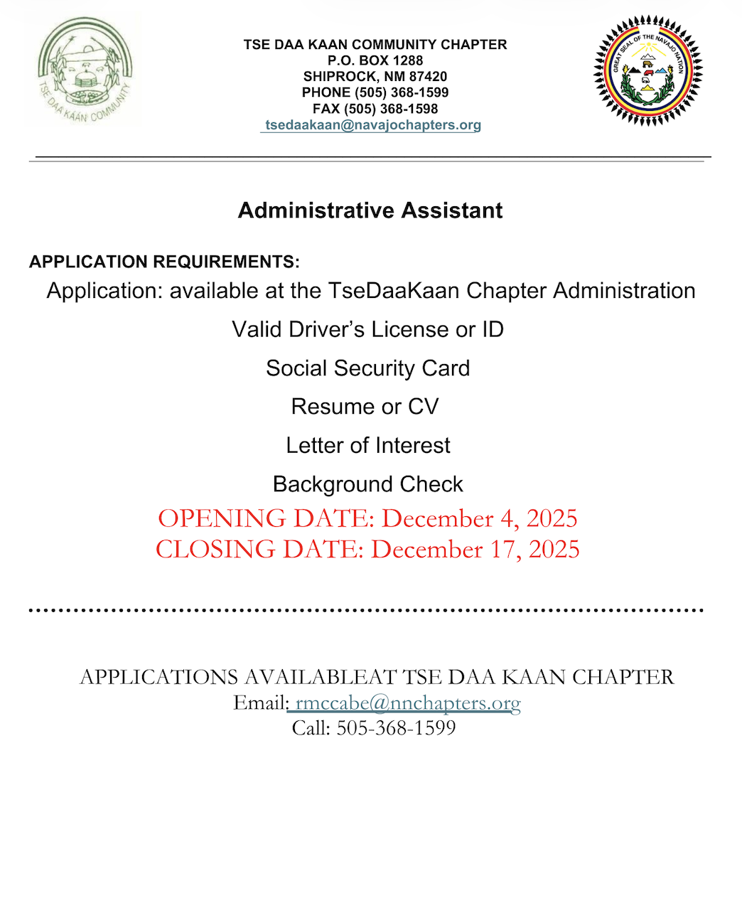 Please contact the chapter for more information – https://tsedaakaan.navajochapters.org/ or tsedaakaan@navajochapters.org